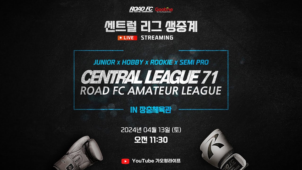 역대 최초 장충체육관에서 펼쳐지는 제71회 센트럴리그 - 참가 선수들의 소감[4월 13일 11시 30분 ROAD FC 공식 유튜브 채널 생중계] ▶ 굽네치킨 : https://www.goobne.co.kr/ ▶ 굽네몰 : https://www.goobnemall.com/ ▶ ROAD FC 공식 홈페이지 : http://www.roadfc.com/ ▶ ROAD FC AfreecaTV : http://bj.afreecatv.com/roadfc999 ▶ ROAD FC 페이스북 : https://www.facebook.com/roadfc/ ▶ ROAD FC 인스타그램 : https://www.instagram.com/roadfc/ ▶ 로드FC 용품 스토어 로드프렌즈 : https://roadfcstore.com/