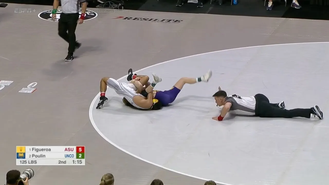2025 Big 12 Wrestling Championships 125lbs Richard Figueroa (ASU) fall Stevo Poulin (UNCO) I do not own this video, all credit/rights to ESPN/Big 12