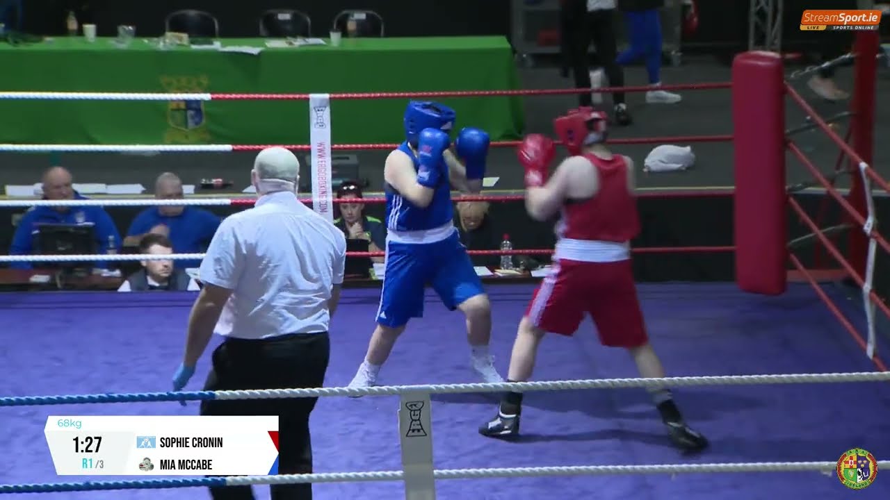 Sophie Cronin (St Francis) and Mia McCabe (Crumlin)contested this 2024 National BG1 Championship 68kg final, streamed by @streamsport-ie7508 #boxing #boxingireland #boxer #irishboxing #IABA #olympicsport #iaba #bout #fight #titleboxing #bout #boxeo #championshipboxing