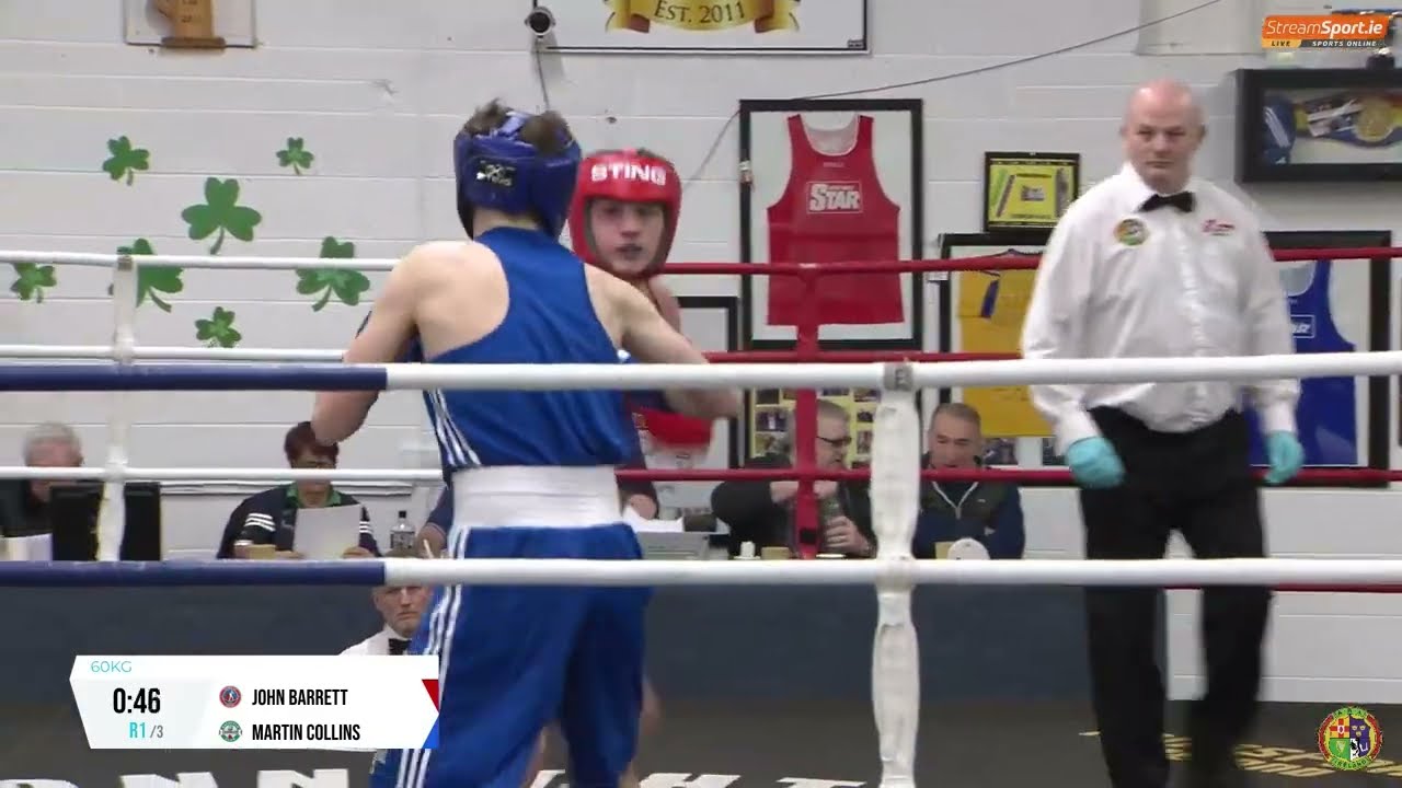 John Barrett (Olympic C) took on Martin Collins (Baldoyle) in the 2024 National BG4 Championship 60kg quarter final, streamed by @streamsport-ie7508 #boxing #boxingireland #boxer #irishboxing #IABA #olympicsport #iaba #bout #fight #titleboxing