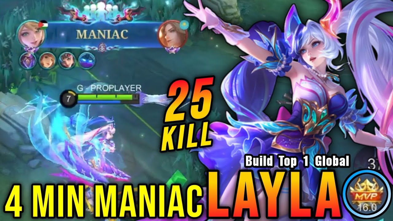4 Minutes MANIAC!! 25 Kills Layla LEGEND Skin MVP 16.0 Points!! - Build Top 1 Global Layla ~ MLBB