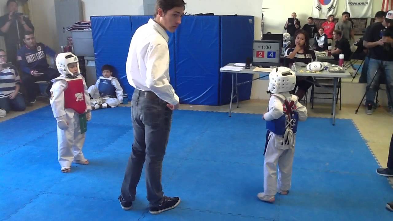 Jeremy (BLUE CHEST GUARD)at an in-house tournament having fun and sparring. Tournament was held at Knockout Martial Arts and Fitness in Rancho Cucamonga. Great job to all the kids who sparred and had fun. Thumbs up!!