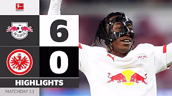 RB Leipzig vs. Eintracht Frankfurt – Highlights from Matchday 13! ► Sub now: https://redirect.bundesliga.com/_bwCS Watch the Bundesliga highlights of RB Leipzig vs. Eintracht Frankfurt from Matchday 13 of the 2025/26 season! Goals: 1-0 Conrad Harder (5'), 2-0 Christoph Baumgartner (31'), 3-0 Yan Diomande (47'), 4-0 David Raum (62' Penalty), 5-0 Yan Diomande (55'), 6-0 Yan Diomande (65') ► Watch Bundesliga in your country: https://redirect.bundesliga.com/Bunde... ► Join the conversation in the Bundesliga Community Tab: https://www.youtube.com/bundesliga/co... We’ve seen another Matchday full of unmissable Bundesliga drama. Don’t miss any highlights from Germany’s football league! The Official Bundesliga YouTube channel gives you access to videos about the greatest goals, best moments and anything else you should know about. Make sure to subscribe now and visit us at https://bndsl.ga/comYT to find out more about the fixtures, analysis and news about your favourite team!
