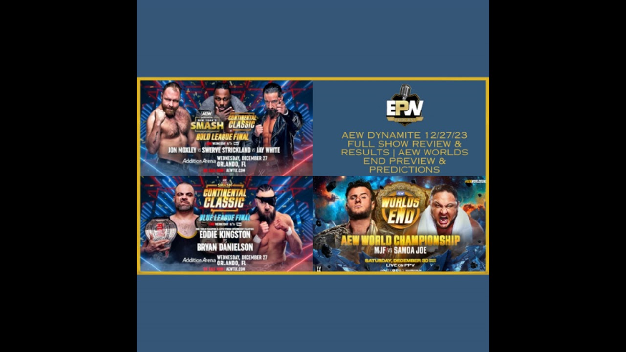 • Jon Moxley vs. Swerve Strickland vs. Jay White in a three-way in the Continental Classic tournament gold league semifinal match • Bryan Danielson vs. Eddie Kingston in the Continental Classic tournament blue league semifinal match • MJF and Samoa Joe vs. The Devil’s Masked Men for the ROH Tag Team Titles • Full Preview & Predictions for AEW Worlds End WE HAVE SOME GREAT MERCH ON TEE PUBLIC 👕 💈 MANSCAPED ✂ Get 20% Off and Free Shipping with the code "EPWSHOW" at Go to🤼♂️🤼♀️ Powerslam.TV Use coupon code “EPWSHOW” to get a free month when they subscribe. Follow our social media, podcasts, and merch accounts for the latest in pro wrestling. 🔗