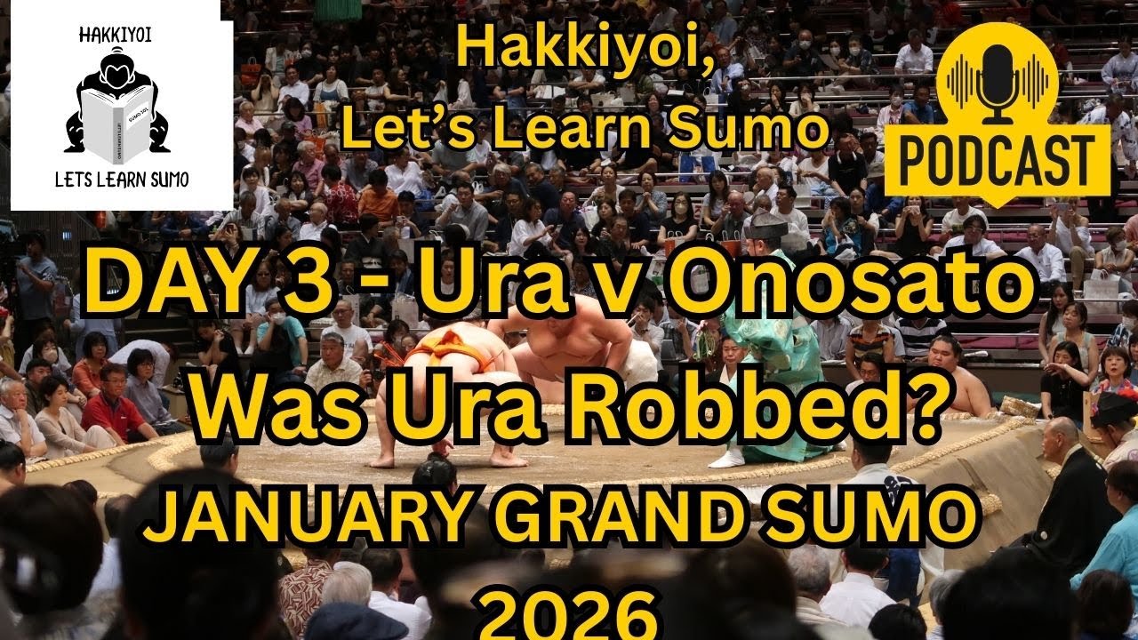 (Audio) Lets Learn Sumo - Day 3 January 2026 Grand Sumo - Extra special episode - Was Ura robbed by the judges? We get more explanation of the decision by the Chief Shimpan. If you enjoy my content you can donate to my Kinboshi Fund at the Buy Me a Coffee link to help pay for some of the subscriptions to keep this channel running. Hakkiyoi listeners! - #Ura #DeadBodyRule #sumo #learnsumo #Japan #Hoshoryu #Onosato #Aonishiki #Kotoshoho #Takayasu #Kinbozan #Tobizaru #hakuoho #Wakatakakage #Oho #wrestling #Tokyo #takerufuji #Onosato #sumowrestling #Onkatsu #Hokuseiho #scandal #kotozakura #tokyo #Fukuoka #Japan #Yokozuna #RopeRun #Ura #Kokugikan #sumowrestling #basho #Henka #fightoftheyear #shimpan Apple Podcast Spotify Instagram X (The Symbol formerly known as Twitter) Send us a text (