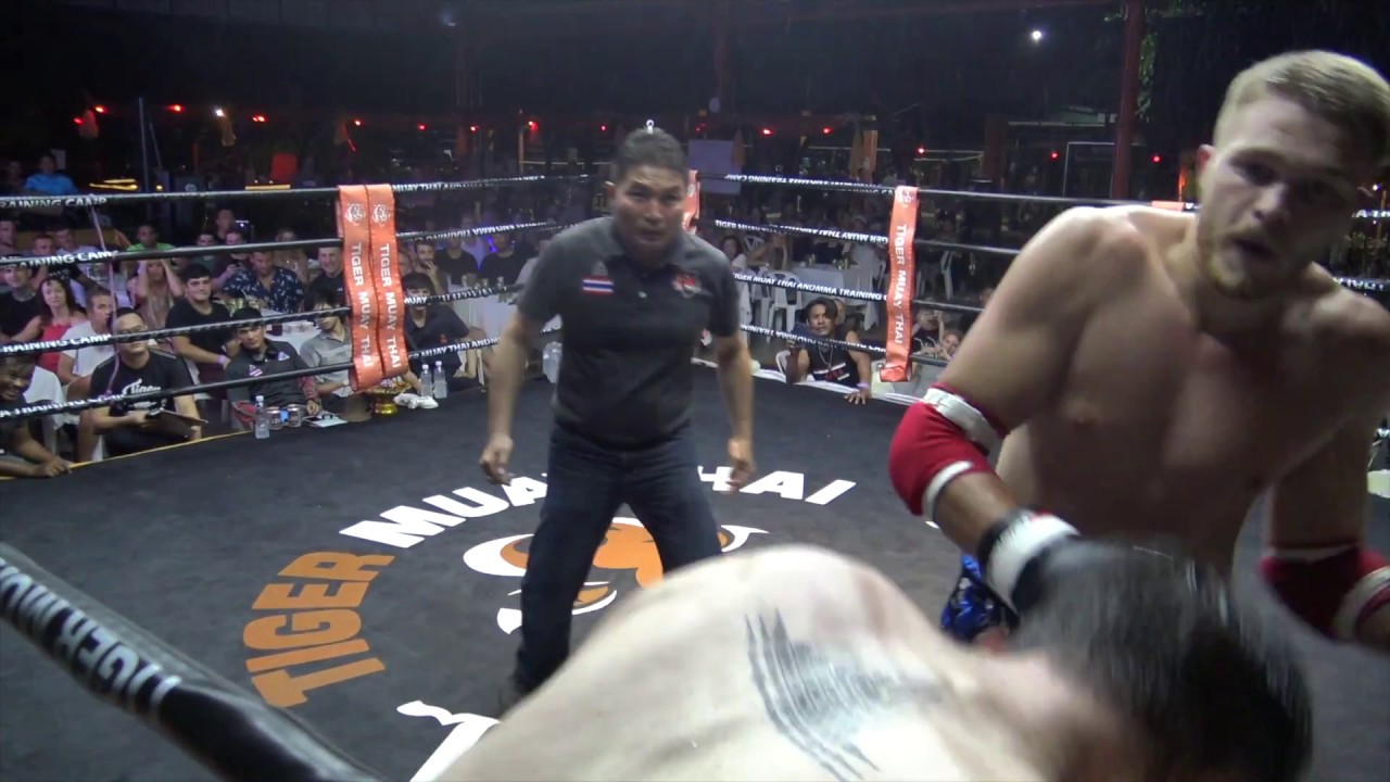 In this amateur Muay Thai bout, Marvin from Germany (red) and Callum from Australia (blue) face off. This fight is from BBQ Beatdown 120, held at Tiger Muay Thai & MMA training camp on the 29th of September 2018. This monthly full moon party event features all you can eat food and drink, music from a professional DJ, and both professional & amateur fights in Muay Thai, MMA, BJJ and western boxing. Train with us: https://www.tigermuaythai.com/ Get our gear: https://www.tmtfightstore.com/en/ Learn online: https://tigermuaythaionline.com/