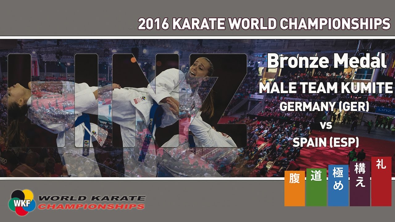 BRONZE MEDAL. (2/4) Male Team Kumite. Germany vs Spain. 2016 World Karate Championships. SUBSCRIBE ► http://bit.ly/N7c4H0 Official World Karate Federation YouTube channel for the distribution and broadcast of Karate Championships. *********************************** The World Karate Federation in Social Media: YouTube: https://www.youtube.com/user/WKFKarateWorldChamps Instagram: http://instagram.com/worldkaratefederation Twitter: https://twitter.com/wkf_tweet Facebook: https://www.facebook.com/wkfofficial Web: http://wkf.net/