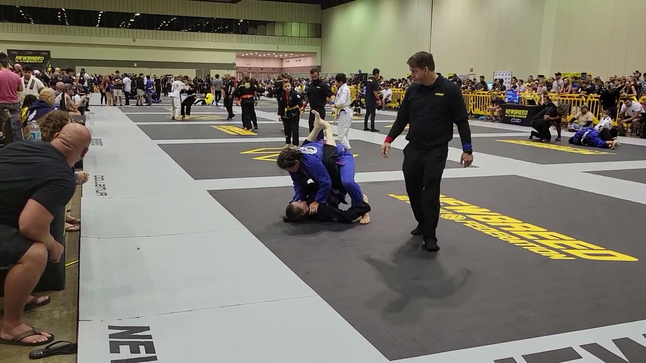 Orlando Newbreed 8/12/23 Match 1 Red Vs Blue 01:11 Standing is the best way to break the closed guard. However she doesn’t have good control of the bottom player’s torso and she is able to sit up. Also no hand is dominated so the bottom player is free to use it. And she takes away the top player’s posture forcing her to make her head lower than her hips. When the top player has a lower head position than their hips the advantage is to the bottom player. 01:37 The bottom player sets the cross collar choke 02:01 Still holding the choke the bottom player goes to the top lock this allows her to curl her legs to further control the top player and prevent her from extending away. It also sets up a nice armbar/ cross collar choke threat. But that isn’t needed as Blue taps. I’m going to put this one in the unique submissions play list as few people know the details of it. And it hardly ever works, this is the only one we have on video. Winner Red Via Cross Collar Choke Note: The Playlists are arranged by technique. This allows you to see the things that are actually being used in competition. There is very little variation in what works. I believe studying these playlists will allow you to make the most of your training time by focusing on escaping and executing these relatively few but common techniques If you see yourself in one of these videos and want your name added please let us know. Or if you would like us to post one of your matches with a review contact us for the drop box address as long as your video has not been posted to youtube . https://www.facebook.com/EverythingBJJOffcial Also, if you would like to give back to the BJJ community and help under-served individuals we would like to encourage you to check out https://www.specialkicks.com/ and help them if you are able. They are an organization to assist special needs individuals in getting enrolled in martial arts programs