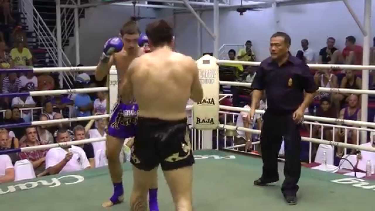 http://www.sinbi-muaythai.com - Sinbi Muay Thai fighter Curtis fights 2 days after his last fight but this time gets a bad cut over his eye so the ref stops the fight.