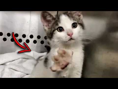 😔 Das Kätzchen streckte jedes Mal seine Pfote aus, wenn jemand an ihm im Tierheim vorbeiging.