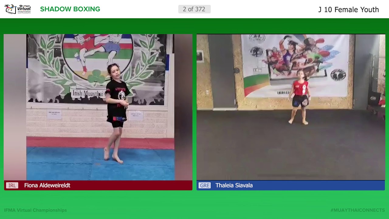 2020 IFMA VIRTUAL CHAMPIONSHIPS Boot #2 - 00:00 (IRL) Fiona Aldeweireldt (GRE) Thaleia Siavala Boot #3 - 3:58 (GER) Anna Heck (USA) Addisyn Ramirez Boot #4 - 7:54 (FRA) Shayana Laurent (SRI) P.D. Malinsa Fernando About tournament: https://virtualchampionship2020.muaythai.sport/index.php Bout results: https://www.ifmalive.com/divisions/64475/brackets All videos: https://virtualchampionship2020.muaythai.sport/vc-videos.php
