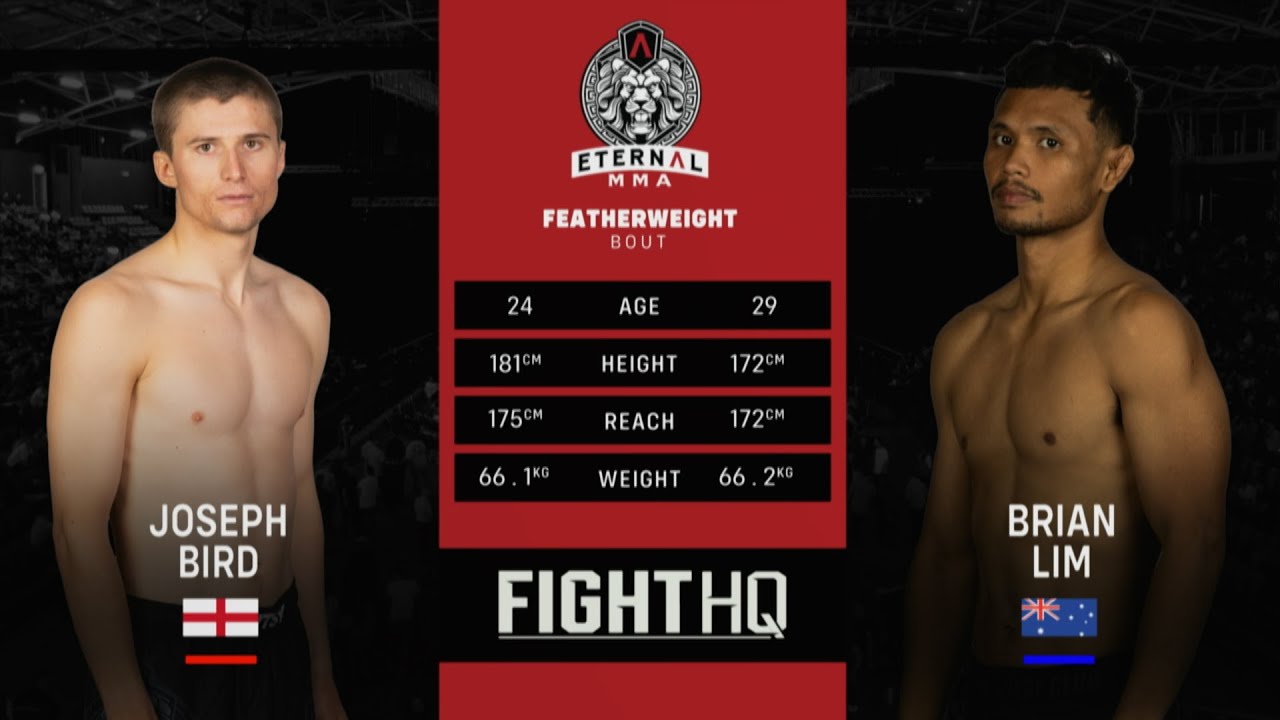🔥 Welcome to Eternal MMA 93 ! 🔥 Watch as Joseph Bird takes on Brian Lim in a thrilling matchup that showcases the best of Australian mixed martial arts! Eternal MMA is proud to be Australia and New Zealand's premier MMA promotion, bringing you the most electrifying fights from across the region. 🌟 About Eternal MMA: Based on Queensland's Gold Coast, we promote up to 11 events per year, featuring a talent pool filled with the finest MMA athletes, from rising amateurs to seasoned pros. Our events are known for their intensity, with undercards showcasing top amateur fighters from the Australia-Pacific region, and main cards packed with professional athletes in the most competitive bouts. 💥 Why You Should Watch: - Experience the excitement of live MMA action. - Discover the future stars of the sport. - Enjoy exclusive highlights, KO's, TKO's, and submission victories! 👉 Don't forget to subscribe to the Eternal MMA YouTube channel for all the latest fights and highlights, including full fight recaps, behind-the-scenes content, and more! Follow Us: - Facebook: Eternal MMA - Instagram: @EternalMMA - TikTok: @eternalmma - OnlyFans: Eternal MMA - Threads: @eternalmma 🌐 For more information, visit www.eternalmma.com. Join the conversation using hashtags: #EternalMMA #MMA #FightNight #AustralianMMA #FullFight #UFC #UFCFightPass