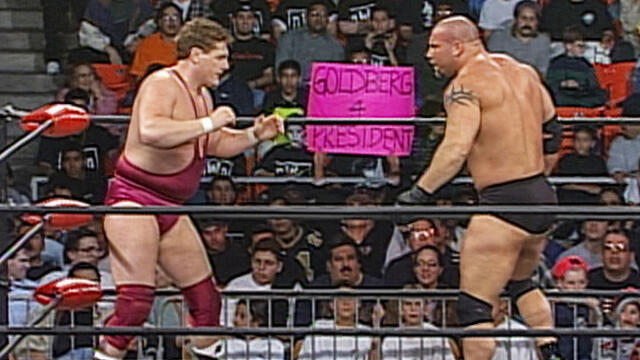 Golberg battles Steven Regal in a hotly contested fight on WCW Nitro.