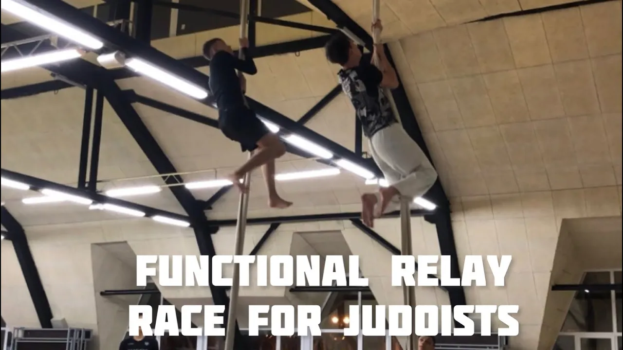 Functional relay race for judoists It is necessary to perform 5 throws, then climb on the rope, then perform 10 circular rotations with the disc, climb on the rope again, perform 7 burpees and climb on the rope again#judo#дзюдо#judotraining #judoka