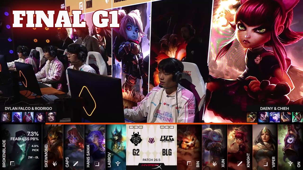 final #FirstStand 2026 Bilibili Gaming vs G2 Esports G1 Lol eSports First Stand 2026 - BLG vs G2 Game 1. First Stand International Tournament 2026 G2 vs BLG VOD. League of Legends Season 16 First Stand Tournament 2026 in South Korea. First game of the day - G2 Esports vs Bilibili Gaming vs best of 5 Game 1. G2 vs BLG G1. G2 Esports Line-up: Broken Blade - top Yorick SkewMond - jungle Jarvan IV Caps - mid Aurora Hans Sama - bot Yunara Labrov - support Nami Bilibili Gaming Line-Up: Bin - Top Gnar Xun - Jungle Poppy Knight - Mid Annie Viper - ADC Sivir ON - Support Lulu Patch: 26.5 - Season 16 Game date: 22.03.2026 | 03/22/2026 | March 22nd 2026 Game place: South Korea Casters: Azael, vedius and Captain Flowers #FST2026 #FirstStand #FST #lolesports #leagueoflegends #league #vods #epicskillshot #ess 2026 First Stand playlist: https://bit.ly/4bIOuEe There are more playlists in the playlist section on the channel! You can always follow all games from both channels and news/updates on my FB page - facebook.com/Epicskillshot Follow me on Twitter: www.twitter.com/epicskillshot Please like/share/comment and sub if you haven't yet - it helps a lot! ☕ If you'd like to support the channel, you can buy me a coffee: https://www.buymeacoffee.com/epicskillshot ☕