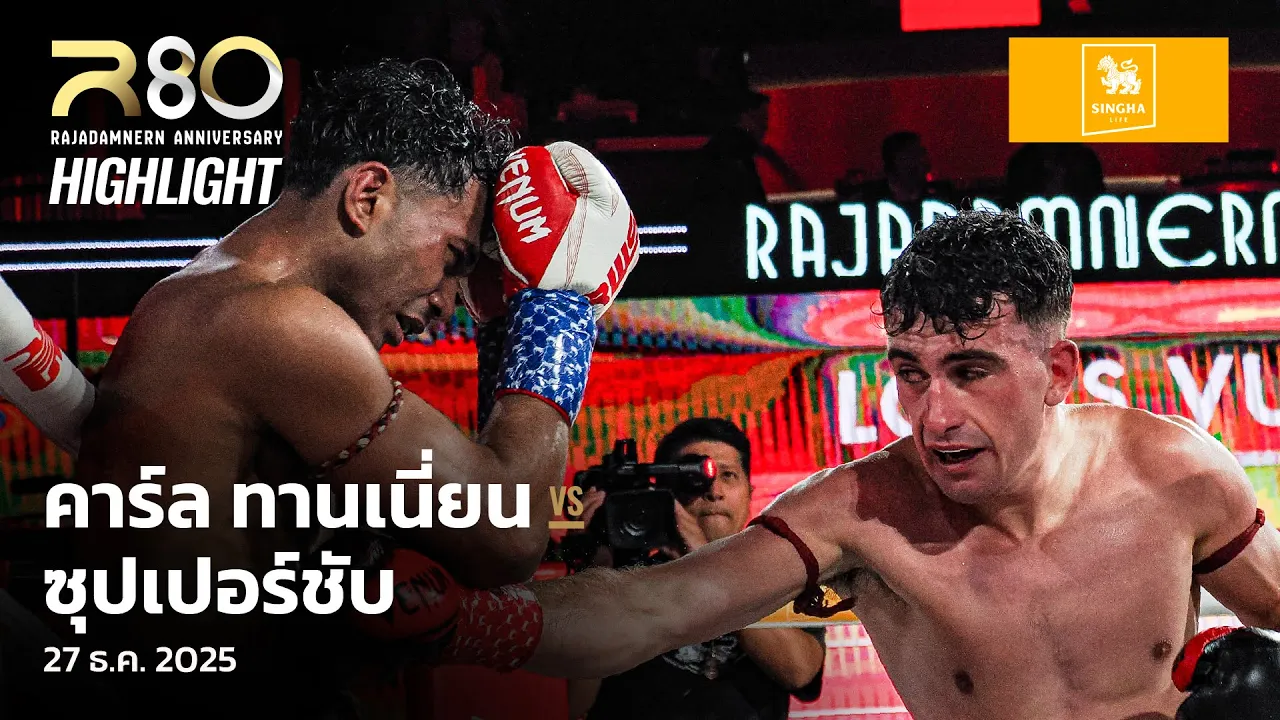 #โหดไม่หยุดเลย! 👏🏻 เก็บชัยชนะใน RWS 5 ไฟต์รวดเข้าไปแล้วสำหรับ 🇮🇪 "คาร์ล ทานเนียน" ที่ไฟต์นี้ถล่ม 🇹🇭 "ซุปเปอร์ชับ บางแสนไฟต์คลับ" จนคว้าชัยไปได้แบบเหนือชั้น! วันเสาร์ที่ 27 ธันวาคมนี้ ตั้งแต่เวลา 20.05 เป็นต้นไป 🌏 : ถ่ายทอดสด 200+ ประเทศและเขตปกครองพิเศษทั่วโลกบน DAZN (นอกประเทศไทย) ในประเทศไทย 📺 : Workpoint หมายเลข 23 เฟซบุ๊ก : Workpoint Entertainment และ RWS - Rajadamnern World Series #R80 #Superfight #RWS #RajadamnernWorldSeries #ราชดำเนิน #เวทีมวยราชดำเนิน #มวยไทย #DAZN #Workpoint #Workpoint23