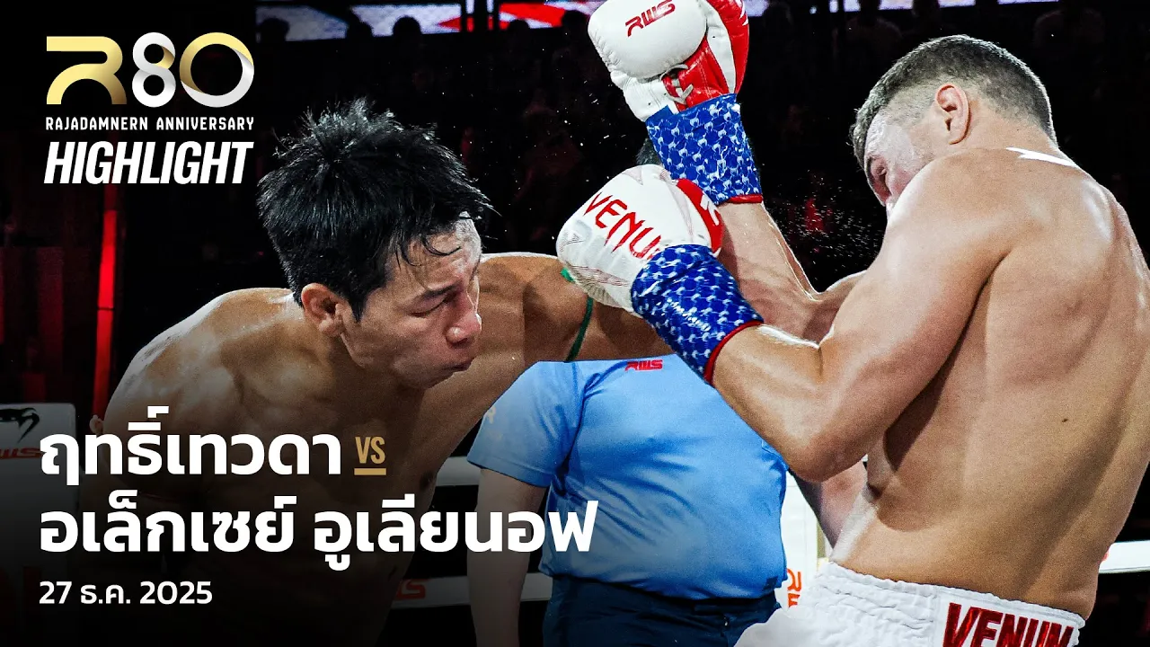 #สับศอกเมื่อไหร่รู้เรื่อง! 💥 เก็บชัยชนะไปได้อีกครั้งสำหรับ 🇹🇭 "ฤทธิ์เทวดา" ที่คราวนี้มอบชัยชนะแบบไม่ครบยกให้ 🇷🇺 "อเล็กเซย์ อูเลียนอฟ" เป็นครั้งแรกในรอบ 10 ปี! วันเสาร์ที่ 27 ธันวาคมนี้ ตั้งแต่เวลา 20.05 เป็นต้นไป 🌏 : ถ่ายทอดสด 200+ ประเทศและเขตปกครองพิเศษทั่วโลกบน DAZN (นอกประเทศไทย) ในประเทศไทย 📺 : Workpoint หมายเลข 23 เฟซบุ๊ก : Workpoint Entertainment และ RWS - Rajadamnern World Series #R80 #Superfight #RWS #RajadamnernWorldSeries #ราชดำเนิน #เวทีมวยราชดำเนิน #มวยไทย #DAZN #Workpoint #Workpoint23