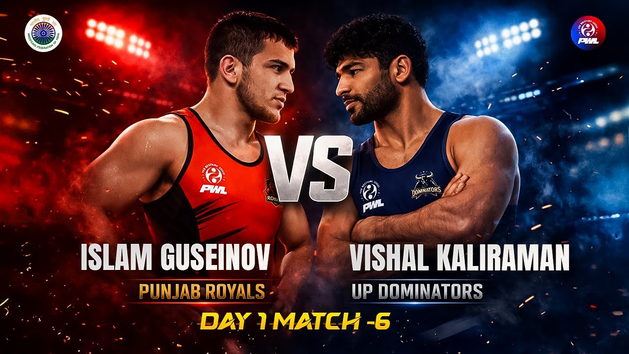 Catch all the action from Day 1, Match 6 of the Pro Wrestling League (PWL) 2026 as UP Dominators’ Vishal Kaliraman takes on Punjab Royals’ Islam Guseinov in the Men’s 74 KG category. This thrilling wrestling bout highlights world-class men’s freestyle wrestling, showcasing strength, speed, and technical mastery. Vishal Kaliraman dominates the mat with aggressive attacks, smart point accumulation, and excellent defense, while Islam Guseinov puts up a strong fight but ultimately falls behind. 🔥 Match Result: Vishal Kaliraman (UP Dominators) defeats Islam Guseinov (Punjab Royals) 10–3 Watch the full match for every takedown, counter, and scoring sequence as these elite wrestlers battle it out for victory and team momentum in India’s premier Olympic-style wrestling league. 📺 Don’t forget to Like, Share & Subscribe for more PWL full matches, highlights, and exclusive wrestling content! #PWL #ProWrestlingLeague #UPDominators #PunjabRoyals #PWLDay1 #Match6 #MensWrestling #FreestyleWrestling #OlympicWrestling #74kg #WrestlingMatch #IndianWrestling #PWL2026 #WrestlingHighlights #VishalKaliraman #IslamGuseinov #PWLTeams #WrestlingLeagueIndia UP Dominators vs Punjab Royals, PWL Day 1 Match 6, Men 74 KG Wrestling, Olympic-style Wrestling India, Pro Wrestling League Match, PWL 2026 Full Match, Indian Wrestling League, Freestyle Wrestling Highlights, Vishal Kaliraman Wrestling, Islam Guseinov Wrestling