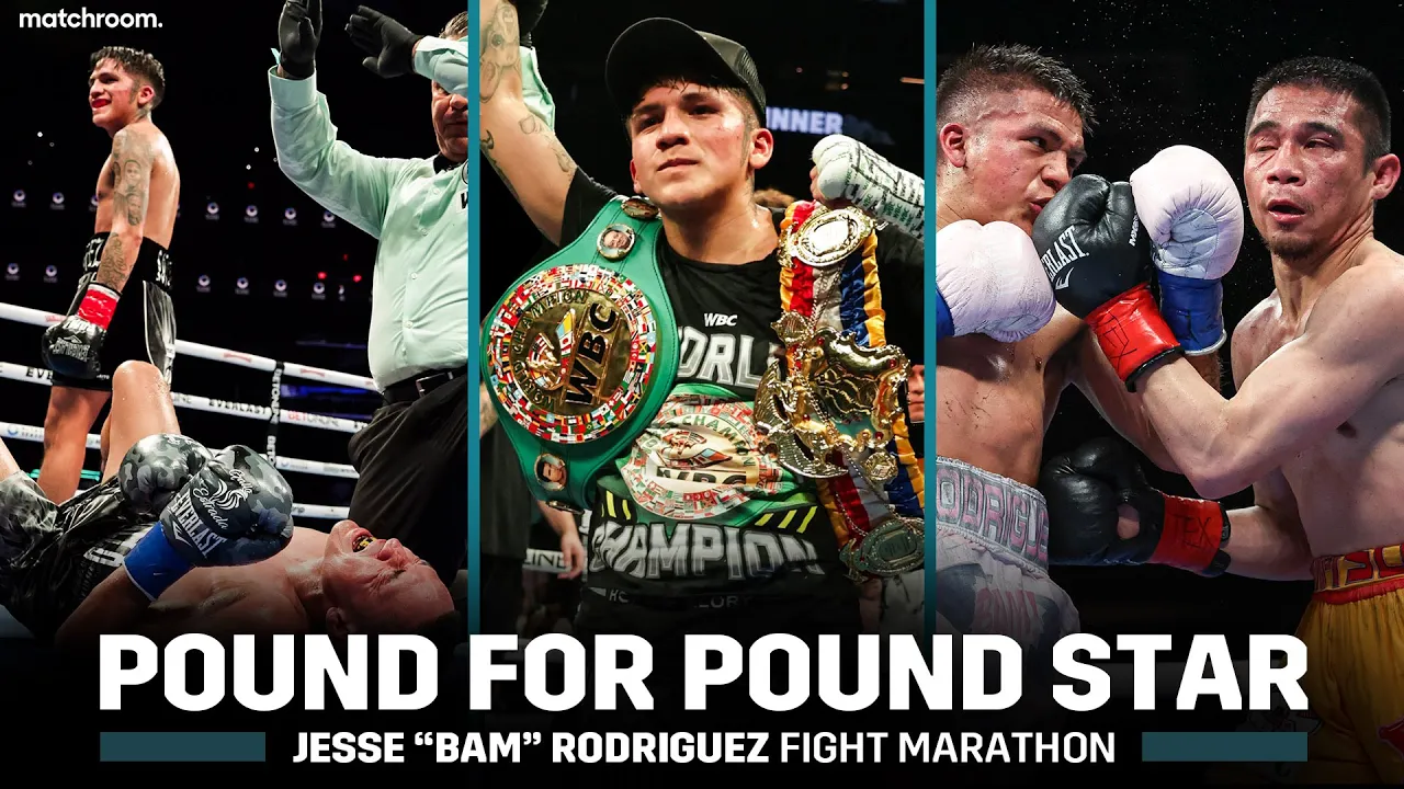 Unbeaten pound for pound superstar Jesse 'Bam' Rodriguez looks to continue his fine form against Pedro Guevara in Philadelphia. Watch several of Bam's fight under the Matchroom banner back to back against the likes of Carlos Cuadras, Srisket Sor Rungvisai, Juan Francisco Estrada, Cristian Gonzalez, Israel Gonzalez and Jose Alejandro Burgos in the build-up to get in the mood! #BamRodriguez #Boxing #MatchroomBoxing *** Subscribe to our channel for exclusive content ➡️ https://bit.ly/MatchroomBoxingYouTube ⇌ Follow Matchroom Boxing On Social ⇌ Instagram → http://www.instagram.com/matchroomboxing Twitter → https://www.twitter.com/matchroomboxing Facebook → https://www.facebook.com/matchroomboxing ⓘ About Matchroom Boxing 📜 Promoted by Eddie Hearn, Matchroom Boxing promote events around the globe in locations including UK, USA, United Arab Emirates, Mexico, Australia and further afield. Our fighter roster includes Anthony Joshua, Canelo Alvarez, Katie Taylor, Dmitry Bivol, Conor Benn, Callum Smith, Leigh Wood, Josh Warrington, Ebanie Bridges and many more. Head over to our website https://www.matchroomboxing.com to view our full stable, upcoming events and the latest news.