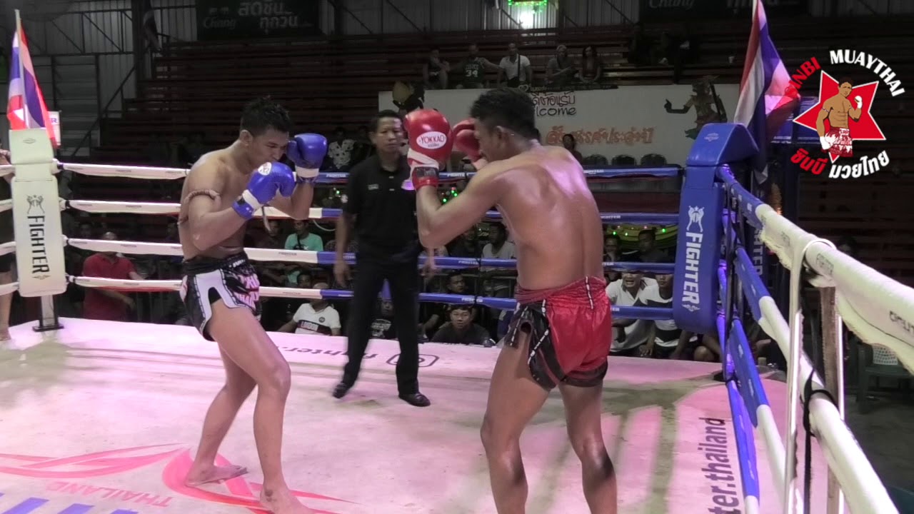 Kru Saenkaeng (Red Corner) v Phetwanlop Yotharak MT (Blue Corner). Kru Saenkaeng, loses by decision in a very close and exciting match against a bigger opponent.