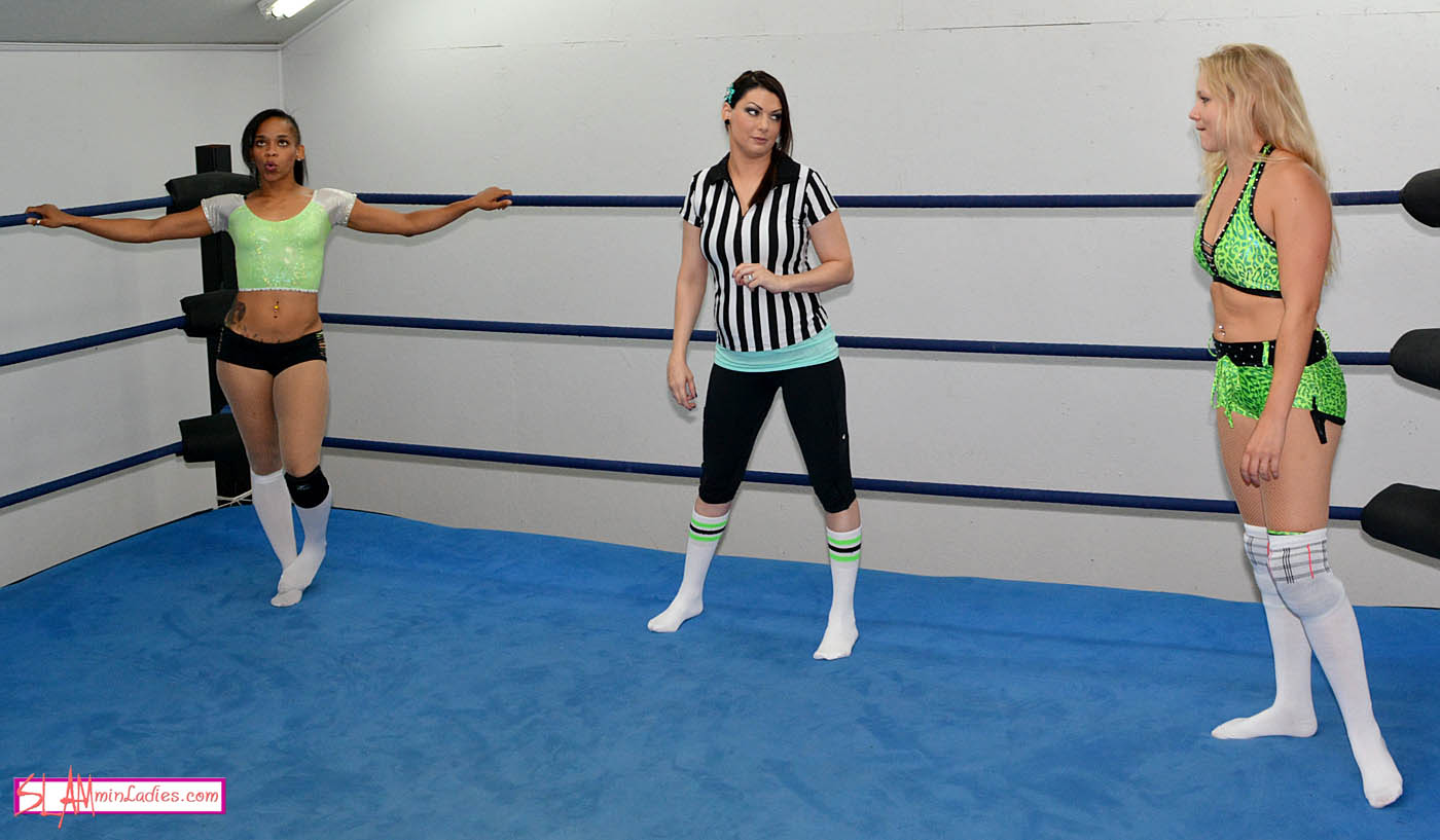 This 2 out of 3 falls match between La Rosa Negra and Leah Von Dutch opens with a great show of flexibility as the ladies warm up in the ring. Leah is pretty athletic, but La Rosa shows off some splits and stretches that leave Leah and referee Rain more than a little nonplussed. In between that and the ominous threat Rosa levels at Leah, talking about taking care of ‘girls with pretty faces’, this one doesn’t look promising for the blonde. That said, Leah manages to give as good as she gets, starting off strong with a rib-crushing Waistscissors and some vicious chops to the chest. Rosa soon has Leah on the mat though, bending her back with combination chin/leglocks. And so it goes, back and forth. Leah clamps on a neckscissors, Boston Crab and wins a fall with a sitout facebuster. Well, Rosa will take her down with another Boston Crab, a monster Backbreaker and some MMA-style submission holds to boot! The final fall could go either way as small packages, Surfboards and Figure Four Leglocks are exchanged. One last hold leaves one lady screaming her submission, down and practically out on the mat.