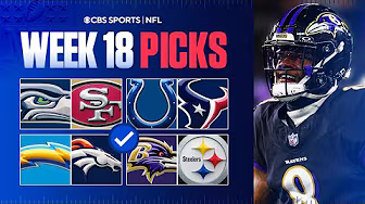 Kyle Long and Pete Prisco join CBS Sports HQ with their picks and best bets for EVERY Week 18 game of the NFL season. [00:00:00] Kyle and Pete’s Records [00:01:20] Panthers at Buccaneers [00:04:18] Seahawks at 49ers [00:08:14] Colts at Texans [00:10:14] Titans at Jaguars [00:13:21] Saints at Falcons [00:15:34] Packers at Vikings [00:17:17] Cowboys at Giants [00:19:54] Browns at Bengals [00:23:30] Chargers at Broncos [00:25:21] Jets at Bills [00:26:40] Commanders at Eagles [00:28:28] Chiefs at Raiders [00:31:43] Dolphins at Patriots [00:33:14] Lions at Bears [00:35:15] Cardinals at Rams [00:38:18] Sunday Night Football: Ravens at Steelers [00:41:22] Week 18 Best Bets SUBSCRIBE TO OUR CHANNEL: / cbssports WATCH CBS Sports HQ: https://www.cbssports.com/live/ Paramount Plus: https://www.paramountplus.com FOLLOW US ON: Facebook - / cbssports Instagram - / cbssports Twitter - / cbssports #nfl #week18 #nflpicks #bestbets