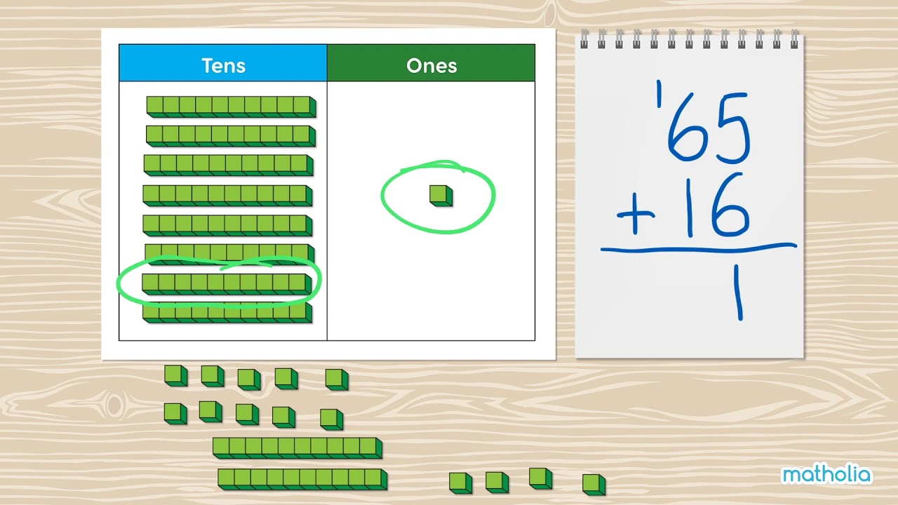 Matholia educational maths video on addition to 100 with regrouping. Base-10 blocks and a place value chart to give students a visual representation by making groups. #matholia #singaporemath #additionto100 #placevalue #base10blocks #additionwithregrouping New videos added daily! Subscribe here: Topic Description: Building upon the foundational work done with the previous addition modules, this module provides further experiences with concretely adding tens and ones, then connects that proficiency with the more abstract standard algorithm for addition with and without regrouping. Word problems continue to be modeled using bar diagrams. Learning Targets: I can draw or build models of numbers between 20 and 100 as a ten and some ones . I can solve addition expressions and equations to 100. I can add two 2-digit numbers number using column addition with or without regrouping. I can model and solve word problems. Suggested Classroom Resources • Multi-link Cubes • Base-10 blocks • Ten frame