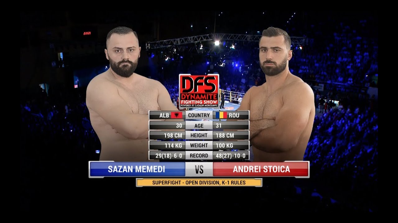 Dynamite Fighting Show 2 | 19 Octombrie | Sala Polivalenta Piatra Nemt Super Fight - Categoria open - Reguli K1 Sazan Memedi (Albania) vs Andrei Stoica (România) ©2018 Dynamite fighting championship®. Commercial reproduction, distribution or transmission of this footage by any means whatsoever without the prior written permission of Dynamite fighting championship® is not permitted.