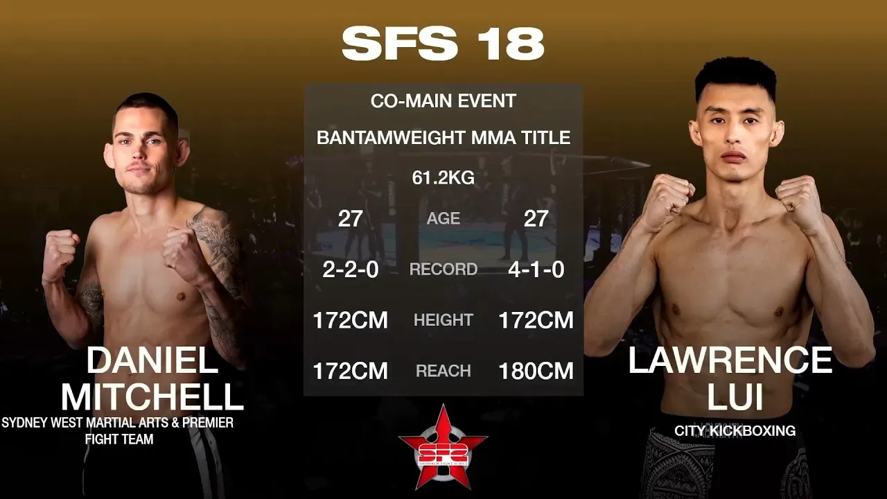 Lawrence Lui vs Daniel Mitchell at SFS 18 from Auckland, New Zealand on July 27, 2024. Experience UFC live, 200+ Live Events, the World's Largest Combat Sports Library, Originals, Podcasts and more with UFC FIGHT PASS, the digital subscription service of the UFC. Sign Up Now: https://ufc.ac/3AofDIW Subscribe to get all the latest UFC content: https://bit.ly/3TkkHGX Connect with UFC FIGHT PASS on Social: 🔵 Twitter: https://www.twitter.com/ufcfightpass 🔵 Facebook: https://www.facebook.com/ufcfightpass 🔴 Instagram: https://www.instagram.com/ufcfightpass 🔴 TikTok: https://www.tiktok.com/@ufcfightpass #ufc #ufcfightpass #ufcbjj #pridefc #wec #strikeforce