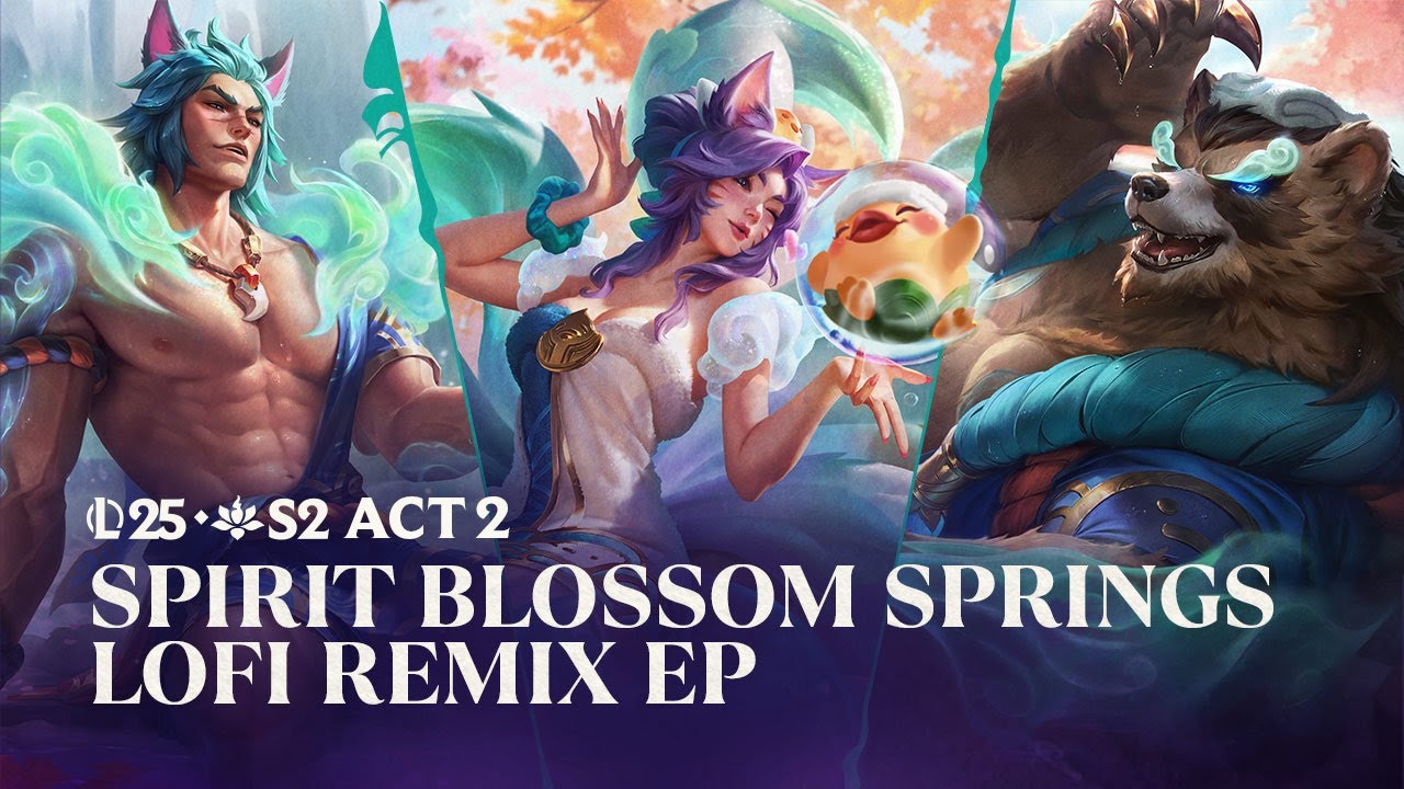 Bask in the soothing beats of Spirit Blossom Springs as your worries melt away. And don’t miss the visualizer from the @ChillhopMusic Raccoon and Friends soaking up the good vibes 🎶https://www.youtube.com/watch?v=m98hOZK-Fkk 0:00 Teemo, the Swift Scout (Spirit Blossom Springs Lofi Remix) - Aarigod 2:45 Aphelios, The Weapon of the Faithful (Spirit Blossom Springs Lofi Remix) - Tesk 4:30 Sona, Maven of the Strings (Spirit Blossom Springs Lofi Remix) - J. Folk 6:30 Volibear, The Relentless Storm (Spirit Blossom Springs Lofi Remix) - Leavv 9:07 Ahri, The Nine-Tailed Fox (Spirit Blossom Springs Lofi Remix) - Blue Wednesday 12:03 Sett, The Boss (Spirit Blossom Springs Lofi Remix) - Afroham 14:59 Yunara, The Unbroken Faith (Spirit Blossom Springs Lofi Remix) - Kreatev League of Legends - Free Download & Play https://signup.leagueoflegends.com/