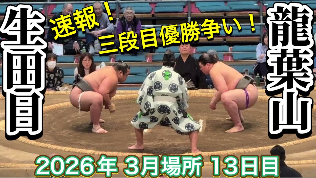速報❗️『三段目優勝争い』二子山部屋 生田目vs龍葉山【大相撲令和8年3月場所】13日目 大阪場所NABATAME vs TATSUBAYAMA【SUMO OSAKA DAY13】2026/3/20