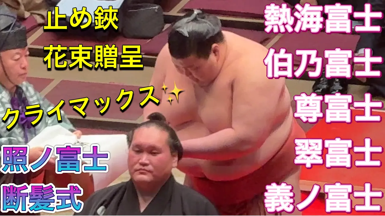 速報❗️【照ノ富士断髪式】クライマックス✨ 熱海富士 伯乃富士 義ノ富士 止め鋏 奥様から花束2026/1/31 TERUNOFUJI retirement ceremony