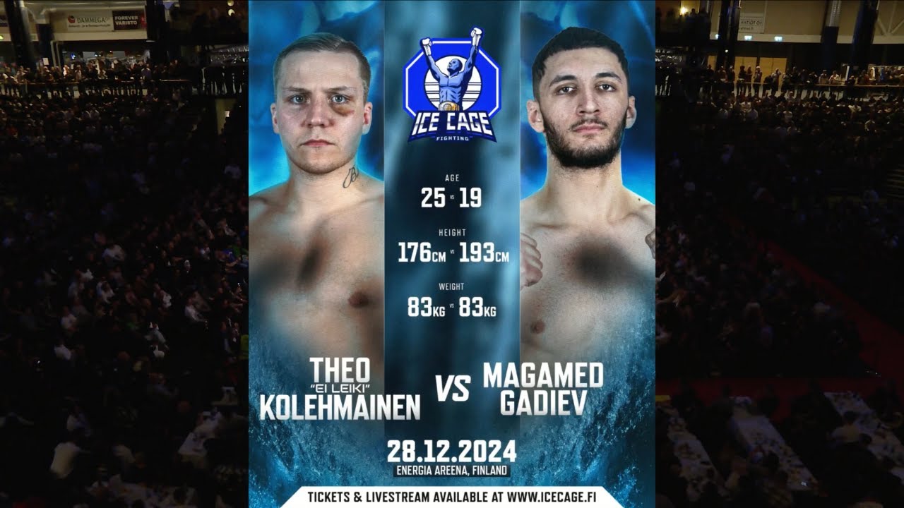 Theo "Ei leiki" Kolehmainen vs Magamed "Maga" Gadiev koko ottelu ICE CAGE 3 -tapahtumassa loppuunmyydyllä Energia Areenalla, Vantaalla 28.12.2024. Seuraava tapahtuma 3.5.2025 Helsingin jäähallilla. Liput nyt saatavilla tästä: https://biletti.fi/e/ice-cage-fighting-4 Kiitos kun olit paikanpäällä tai seurasit tapahtumaa livelähetyksen kautta ja saimme luoda yhdessä tästä illasta ikimuistoisen! Haluamme järjestää vielä kovempia tapahtumia ja seuraavasta tapahtumasta informoidaan mahdollisimman pian näissä sosiaalisen median kanavissa ensimmäisenä: ⚡️| PYSY AJAN TASALLA https://www.instagram.com/icecagefighting/ https://www.tiktok.com/@icecagefighting/ https://www.facebook.com/icecagefightingofficial/ https://www.youtube.com/@icecagefighting/