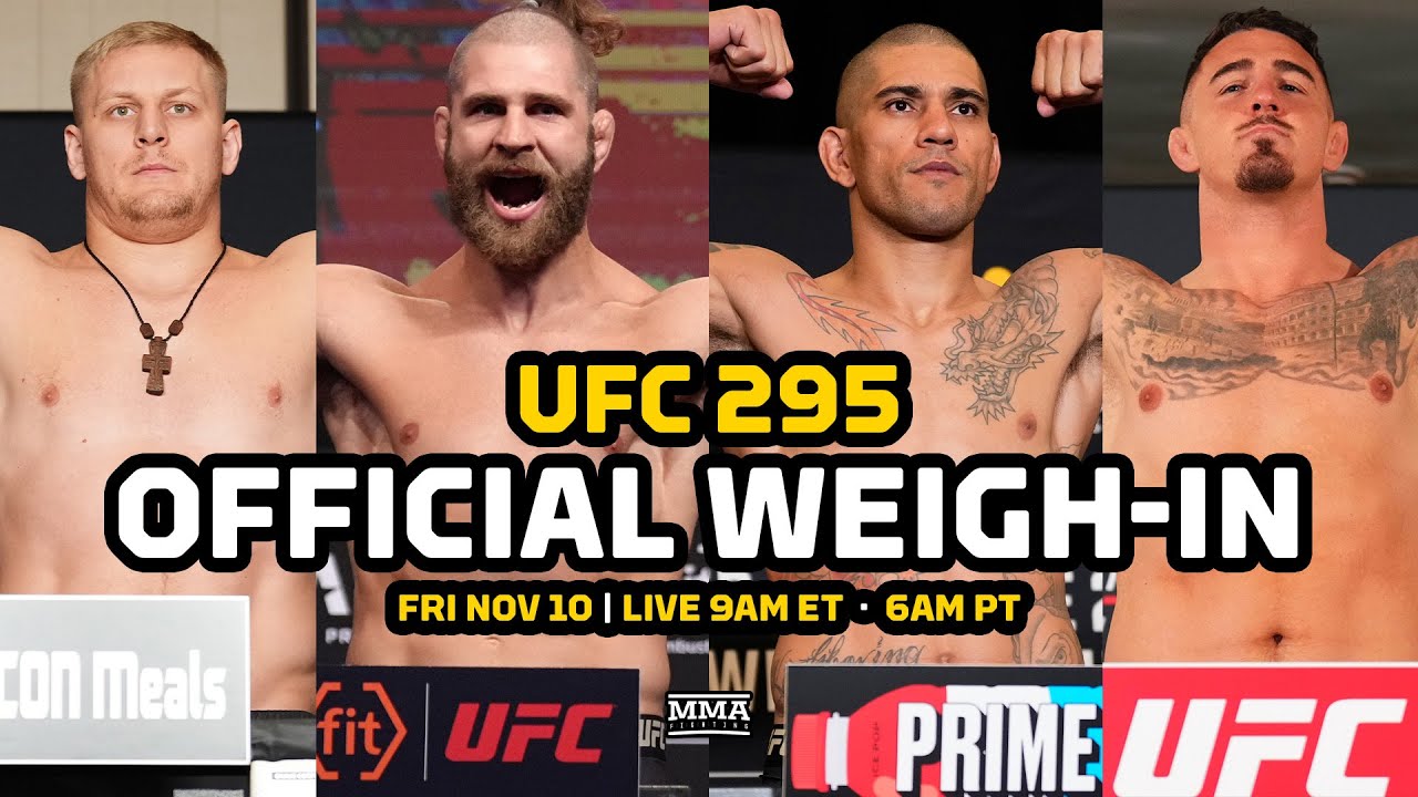 Watch the #UFC295 official weigh-ins live from New York City. The lineup includes: · Jiri Prochazka vs. Alex Pereira · Sergei Pavlovich vs. Tom Aspinall · Mackenzie Dern vs. Jessica Andrade · Matt Frevola vs. Benoit Saint Denis · Pat Sabatini vs. Diego Lopes · Stephen Erceg vs. Alessandro Costa · Tabatha Ricci vs. Loopy Godinez · Mateusz Rebecki vs. Roosevelt Roberts · Nazim Sadykhov vs. Viacheslav Borshchev · Jared Gordon vs. Mark Madsen · John Castaneda vs. Kyung Ho Kang · Kevin Borjas vs. Joshua Van D· ennis Buzukja vs. Jamall Emmers Join this channel to get access to perks: https://www.youtube.com/channel/UC4f1JueVgo5t9HSmobCRPug/join Subscribe to MMA Fighting on YouTube: http://goo.gl/dYpsgH Subscribe to The MMA Hour on iTunes: http://Apple.co/themmahour Subscribe to The MMA Hour on Spotify: https://open.spotify.com/show/0NUQhyUeYQcbtHOV10qmbb Subscribe to MMA Fighting feed on iTunes: https://podcasts.apple.com/us/podcast/mma-fighting/id320642139 Check out our full video catalog: http://goo.gl/u8VvLi Visit our playlists: http://goo.gl/eFhsvM Like MMAF on Facebook: http://goo.gl/uhdg7Z Follow on Twitter: http://goo.gl/nOATUI Read More: http://www.mmafighting.com MMA Fighting is your home for exclusive interviews, live shows, and more for one of the world's fastest-growing sports. Get latest news and more here: http://www.mmafighting.com