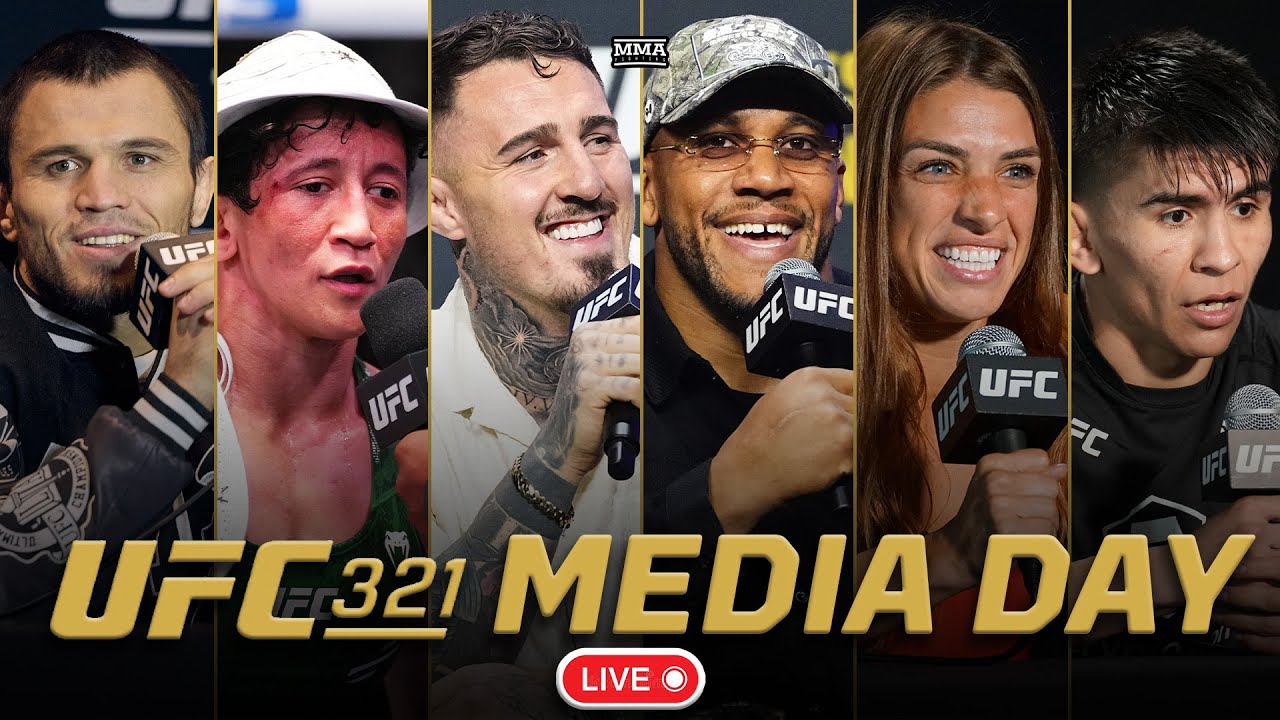 Watch the #UFC321 media day live from Abu Dhabi. Participants include: • Tom Aspinall – UFC heavyweight champion • Ciryl Gane – No.1 UFC heavyweight • Virna Jandiroba – No. 1 UFC women’s strawweight • Mackenzie Dern – No.5 UFC women’s strawweight • Umar Nurmagomedov – No.2 UFC bantamweight • Mario Bautista – No.8 UFC bantamweight • Alexander Volkov – No.2 UFC heavyweight • Jailton Almeida – No.5 UFC heavyweight • Aleksandar Rakic – No. 7 UFC light heavyweight • Azamat Murzakanov – No. 10 UFC light heavyweight 🔵 Join this channel to get access to perks: https://www.youtube.com/channel/UC4f1JueVgo5t9HSmobCRPug/join 🔵 Subscribe to MMA Fighting on YouTube: http://goo.gl/dYpsgH 🔵 Subscribe to MMA Fighting feed on iTunes: https://podcasts.apple.com/us/podcast/mma-fighting/id320642139 🔴 Check out our full video catalog: http://goo.gl/u8VvLi 🔴 Visit our playlists: http://goo.gl/eFhsvM 🔗 Like on Facebook: https://mma-fighting.visitlink.me/jXx747 🔗 Follow on X: https://mma-fighting.visitlink.me/oHZAG3 🔗 Follow on Instagram: https://mma-fighting.visitlink.me/eZP5ff 🔗 Follow on TikTok: https://mma-fighting.visitlink.me/DZzQ3W 🔗 Follow on Threads: https://mma-fighting.visitlink.me/pJJ2xj 🔗 Follow on Bluesky: https://mma-fighting.visitlink.me/GIxe-N 🔗 Subscribe on Twitch: https://mma-fighting.visitlink.me/nSjCJV Read More: http://www.mmafighting.com MMA Fighting is your home for exclusive interviews, live shows, and more for one of the world's fastest-growing sports. #tomaspinall #cirylgane