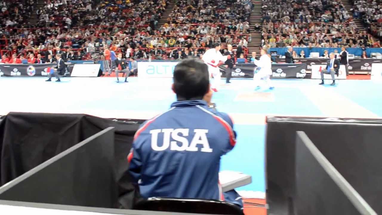 Blog: http://wkfkarateworldchamps.com Subscribe now http://bit.ly/N7c4H0 USA vs Bulgaria - Female Team Kumite Eliminatory rounds - 2012 World Karate Championships