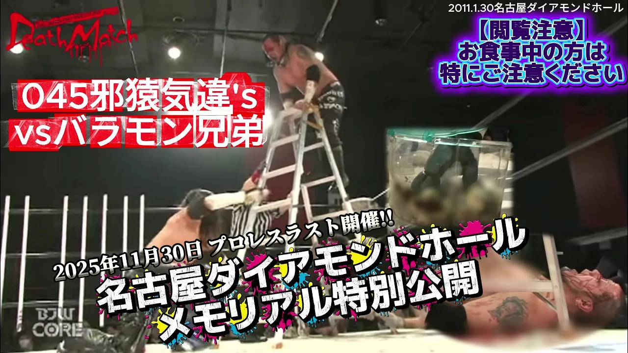 ☆メンバーシップ「BJW CORE YouTube」ご加入で公開中の試合動画が見放題!☆ Subscribe to the membership "BJW CORE YouTube" and watch match videos! →https://www.youtube.com/channel/UC80y-ppI3jcewb8rkOh7oQw/join ☆数々の伝説を残してきた名古屋ダイアモンドホールでの最後の興行は大日本プロレス。 愛知出身の影山道雄と伊東優作がデスマッチヘビーをかけて激突! 2025年11月30日(日)名古屋ダイアモンドホール大会の情報はこちら→ https://bjw.co.jp/schedule/s2025-11-30/ 【日時】2011年1月30日(日) 【会場】愛知・名古屋クラブダイアモンドホール(CLUB DIAMOND HALL) ▼BJW認定タッグ選手権試合 蛍光灯&ラダー&凶器持ち込みデスマッチ 30分1本勝負 【王者組,045邪猿気違's】葛西純&“黒天使”沼澤邪鬼vs【挑戦者組,バラモン兄弟】バラモンシュウ&バラモンケイ ▼English Information January 30 , 2011 Aichi・Nagoya CLUB DIAMOND HALL Light Tube +α Deathmatch 30 minutes limit BJW Tag Team Championship 30 minutes limit 【CHAMPION 】Jun KASAI & "Black Angel" Jaki Numazawa vs 【CHALLENGER】Brahman Shu & Brahman Kei (The Brahman Brothers) BJ-SHOP accept orders from overseas! Click here, and you can buy BJW items!→ https://bjw-shop.com/ Twitter English account→ https://twitter.com/BjwEnglish You can watch all BJW videos ,if you subscribe BJWCORE→ http://bjwcore.com/ ☆あなたの街に大日本プロレスが!?大会チケットのご購入はこちらから!!☆ ▼大日本プロレス公式通販サイト「BJ-SHOP」→ https://www.bjw-shop.com ▼チケットぴあ→ https://w.pia.jp/t/bjw/ ▼イープラス→ https://eplus.jp/bjw/ ▼ローソンチケット→ https://l-tike.com/sports/bjw/ ☆大日本プロレス公式サービス一覧☆ ▼月額888円で大日本プロレスが見放題!「BJW CORE 」→ http://bjwcore.com/ ▼大日本プロレス公式HP→ http://www.bjw.co.jp ▼大日本プロレス公式Twitter→ https://twitter.com/BJWOfficial ▼大日本プロレス公式Instagram→ https://www.instagram.com/bjw_official/ ▼大日本プロレス公式TikTok→ https://www.tiktok.com/@bjw_official ▼"その効果反則級!!!"「販促レスラー」→ https://www.hansokuwrestler.com/ ▼ニコニコ生放送「大日本プロレスch」 → https://ch.nicovideo.jp/bjw #プロレス #大日本プロレス #BJW #prowrestling #葛西純 #バラモン兄弟 #pw_freedoms #deathmatch #デスマッチ #蛍光灯デスマッチ
