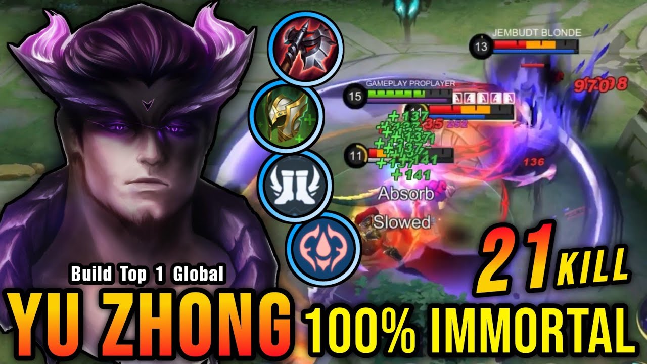 100% IMMORTAL!! 21 Kills Yu Zhong New Build and Emblem!! - Build Top 1 Global Yu Zhong ~ MLBB