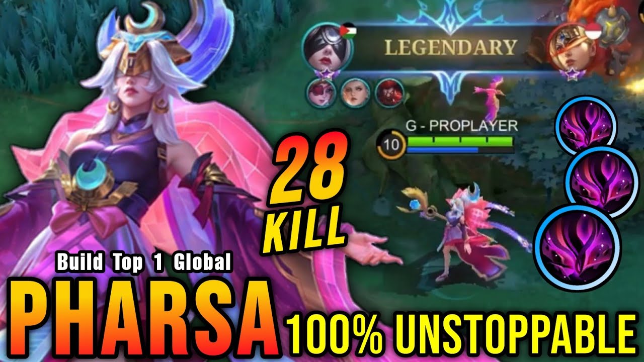 100% Unstoppable!! 28 Kills Pharsa One Hit Delete!! - Build Top 1 Global Pharsa ~ MLBB