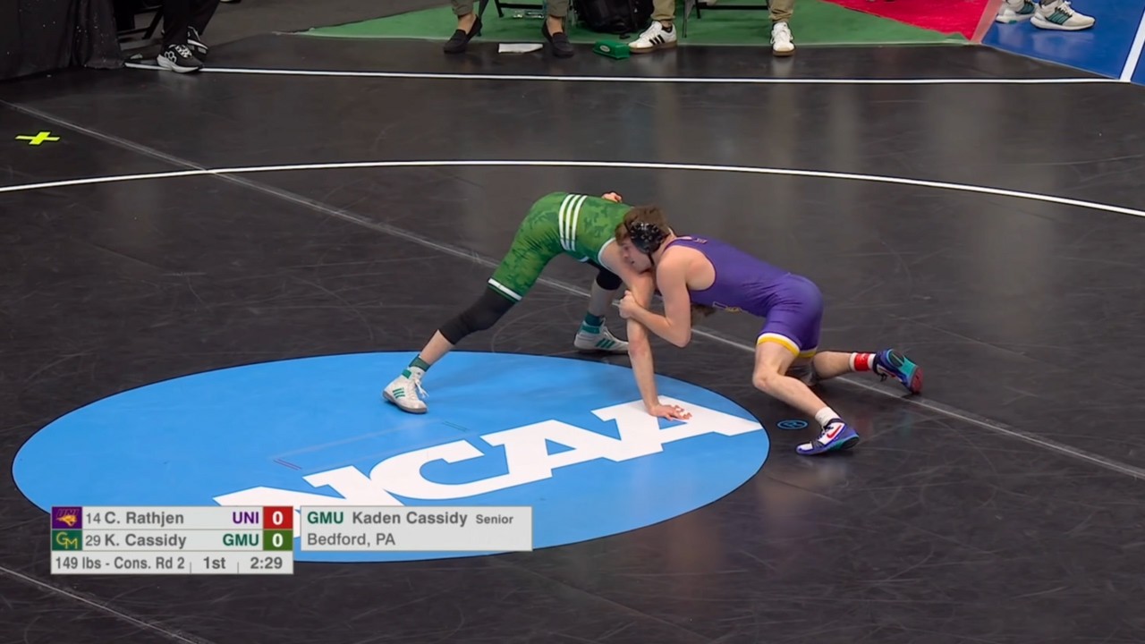 2026 NCAA Wrestling Championships consolations 149lbs Caleb Rathjen (UNI) dec Kaden Cassidy (GMU) I do not own this video, all credit/rights to ESPN/NCAA