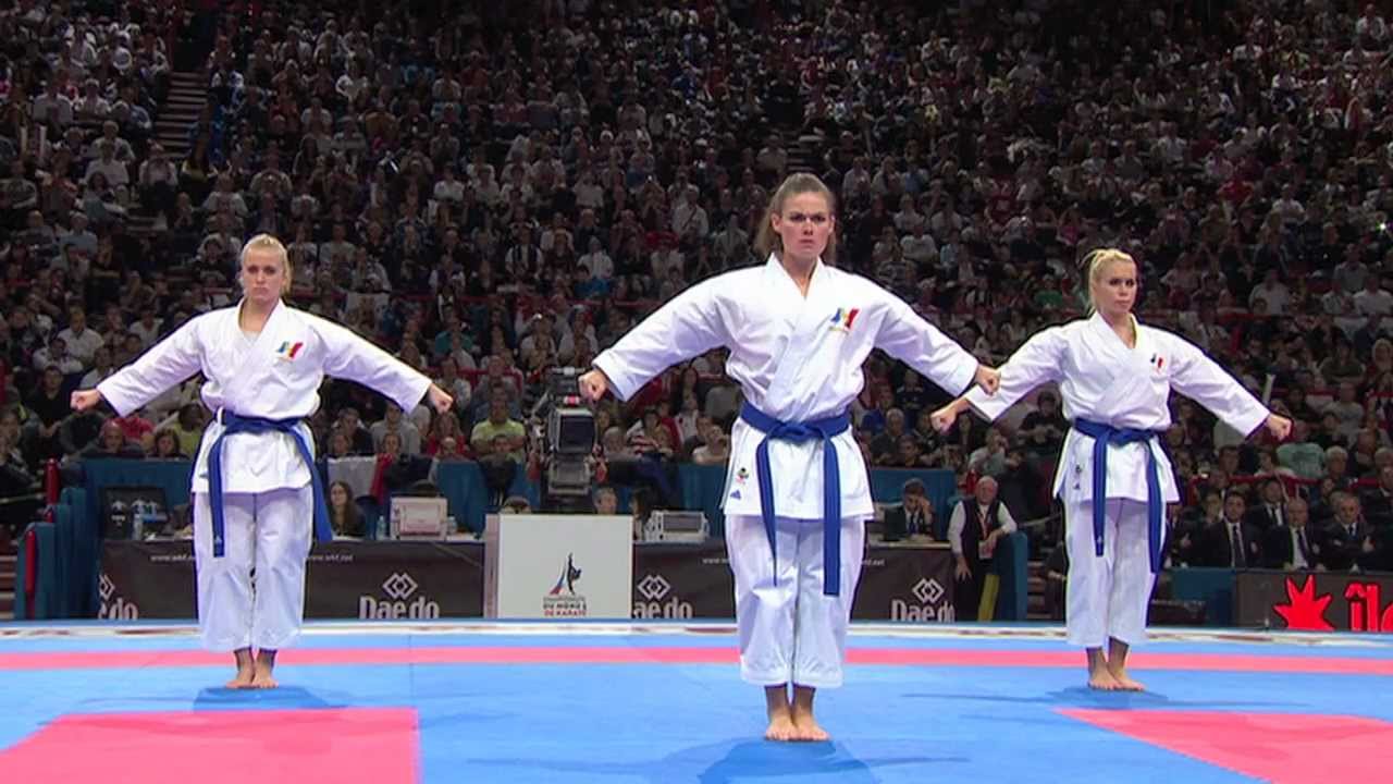 Subscribe to WKFKarateWorldChamps! http://bit.ly/N7c4H0 WKF Blog! http://goo.gl/k23cg Tweet! http://goo.gl/0gb0c Bronze Female Team Kata Venezuela vs France. WKF World Karate Championships 2012 Paris.