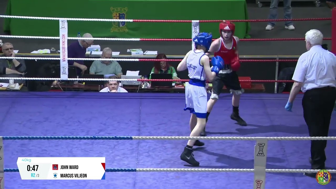 John Ward (Ballyhaunis) and Marcus Viljeon (Star of the Sea)contest this 2024 National BG2 Championship 40kg quarter final, streamed by @streamsport-ie7508 #boxing #boxingireland #boxer #irishboxing #IABA #olympicsport #iaba #bout #fight #titleboxing #bout #championshipboxing