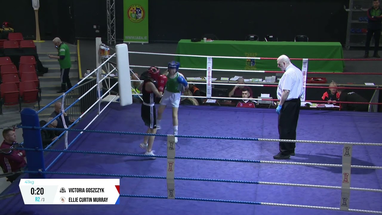 Victoria Goszczyk (East Meath) and Ellie Curtin Murray (Golden Gloves M) contested the 2024 National G1& 2 Championship 41kg semi-final, streamed by @streamsport-ie7508 #boxing #boxingireland #boxer #irishboxing #IABA #olympicsport #bout #fight #titleboxing #boxingnews #boxeo #boxe #Box