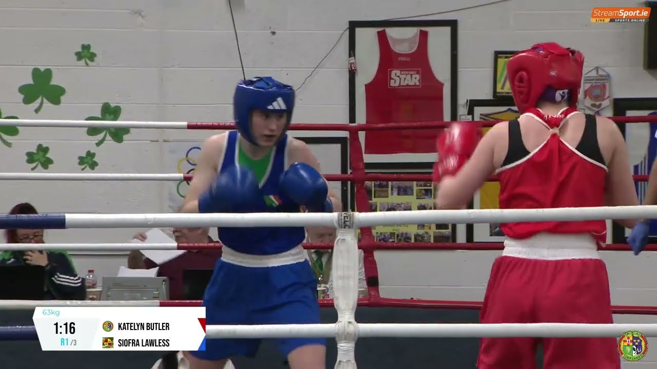 Katelyn Butler (St Colmans) and Siofra Lawless (Four Kings) contested the 2024 National Junior 2 Championship 63kg final, streamed by @streamsport-ie7508 #boxing #boxingireland #boxer #irishboxing #IABA #olympicsport #iaba #bout #fight #titleboxing #championshipboxing #boxingnews