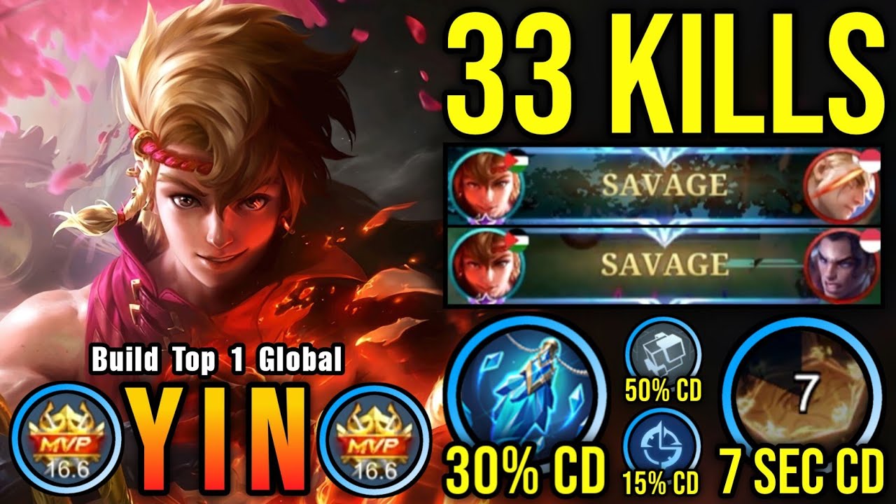 33 Kills + 2x SAVAGE!! Yin New META Build and Emblem 100% Broken!! - Build Top 1 Global Yin ~ MLBB