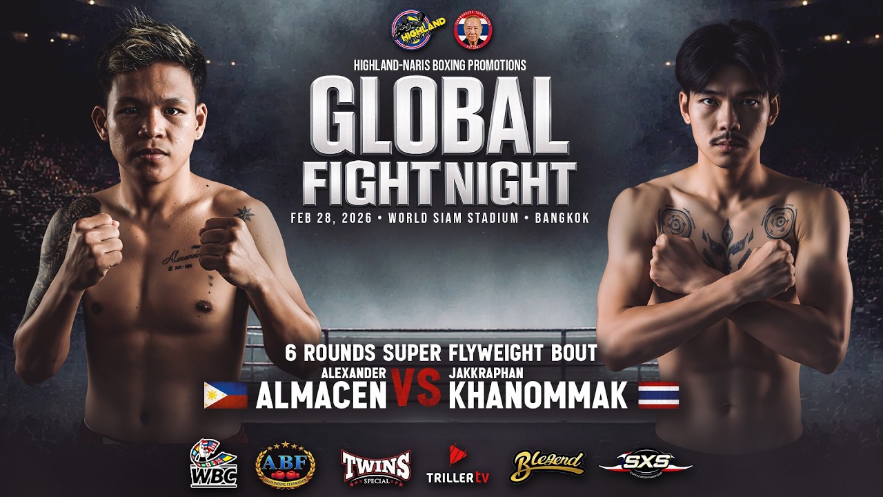Alexander Almacen PH VS Jakkraphan Khanommak TH | Feb 28, 2026 | Bangkok, Thailand GLOBAL FIGHT NIGHT Feb 28, 2026 World Siam Stadium – Bangkok, Thailand Highland Boxing Promotions Presents 🇵🇭 Alexander Almacen vs 🇹🇭 Jakkraphan Khanommak 6 Rounds | Super Flyweight Bout Philippines vs Thailand in a fast-paced super flyweight showdown. Alexander Almacen brings Filipino grit and sharp combinations into enemy territory as Jakkraphan Khanommak defends home soil with speed and aggression. High tempo. Lightning exchanges. Non-stop action. Six rounds. No room for mistakes. #GlobalFightNight #HighlandBoxingPromotions #SuperFlyweight #PhilippinesVsThailand #FightNight #BangkokThailand #Boxing2026 #RisingStars