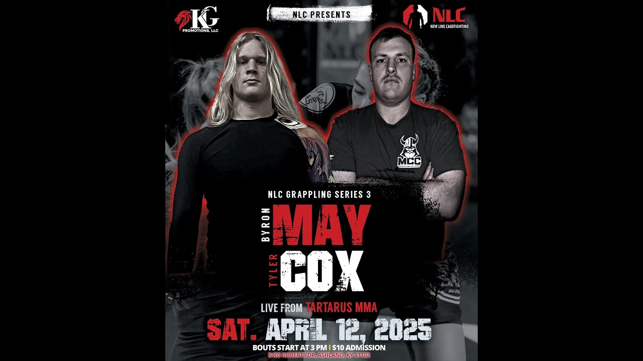 NLC Grappling Series 3 April 12, 2025 Live from Tartarus MMA in Ashland, KY Bout #15 Byron May (1-0) of Davis MMA meets newcome Tyler Cox (NLC Debut) of MCC Jiu Jitsu in a Heavyweight BJJ Showdown! Join this channel to get access to perks: https://www.youtube.com/channel/UCZoxYen5PGFcOFxW5znMJnw/join
