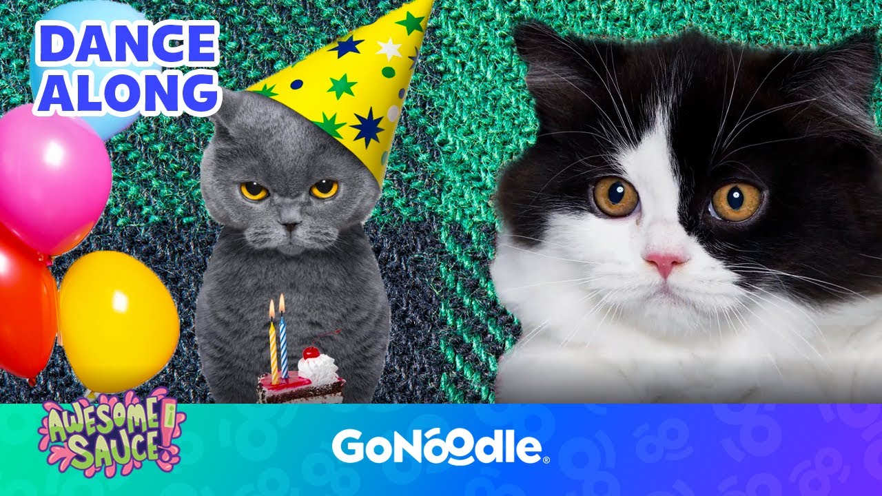 All cats to the dance floor! Get ready to dance and sing along at the cat party. Subscribe To GoNoodle for more FUN kids videos: https://www.youtube.com/c/GoNoodle?sub_confirmation=1 WATCH Moose Tube: https://www.youtube.com/watch?v=kkyOqpFBPig&list=PLAwOTEJXH-cOL_WFPF4FcjqBM-_6oBwET WATCH Blazer Fresh: https://www.youtube.com/watch?v=WFJwoqrr7bU&list=PLAwOTEJXH-cOM0X5cnnZpkWxTtryDpv_8 About GoNoodle: GoNoodle videos get kids moving to be their strongest, bravest, silliest, smartest, bestest selves. Join the party and get ready for a fun-filled day of dancing, stretching, running, jumping, deep breathing, and wiggling with GoNoodle. Visit GoNoodle: https://www.gonoodle.com/ LISTEN TO GONOODLE MUSIC! GoNoodle music is available to stream on Spotify, Apple Music, Amazon Music, and more… Listen to Awesome Sauce: https://gonoodle.lnk.to/AwesomeSauce Listen to The Best Of Go Noodle: https://GoNoodle.lnk.to/BestOfPlaylistID Apple Music: https://music.apple.com/us/artist/gonoodle/1525807283 Spotify: https://open.spotify.com/artist/13QcQR3aMDTgC8jdNqSx4f?si=hw1j9wndTrC4ga1d3jSkKw Amazon Music: https://music.amazon.com/artists/B08FWXSL75/gonoodle?marketplaceId=ATVPDKIKX0DER&musicTerritory=US&ref=dm_sh_mFqNJIB9wzdLkfcrXCjhfKu41 Like us on Facebook: https://www.facebook.com/GoNoodleGames Follow Us On Instagram: https://www.instagram.com/gonoodle/ Follow Us On Twitter: https://twitter.com/GoNoodle GoNoodle: https://www.youtube.com/c/GoNoodle Cat Party Song | Songs for Kids | Dance Along | GoNoodle https://www.youtube.com/watch?v=VIz_RjAYPS4 #gonoodle #cats #party #singalong