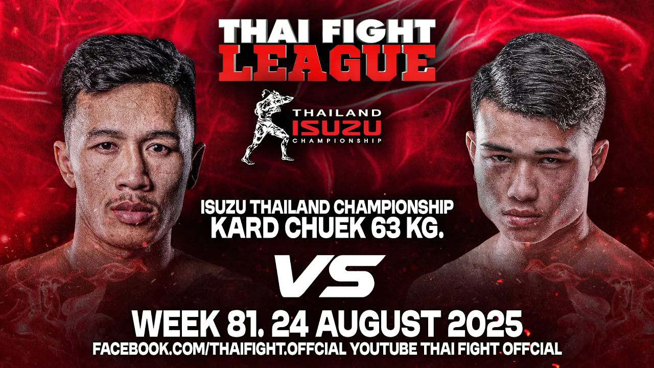 THAI FIGHT LEAGUE #81 🗓️ On Sunday, August 24, 2025 ⏰ LIVE 6 p.m. to 8 p.m. (ICT) 📍 At WORLD SIAM STADIUM, Tawanna, Bangkapi BKK 📺 TH Channel 8 Press 27 (TH & EN) 🇹🇭 YouTube Thai Fight Official 🇬🇧 YouTube Thai Fight International . #ThaiFightLeague #THAIFIGHT #KardChuek #ไทยไฟท์ลีก #ไทยไฟท์ #ไทยไฟท์ล่าสุด #muaythai #MuayBoran #thaifightkardchuek . Facebook : Thai Fight : https://www.facebook.com/thaifight.official/ Instagram : https://www.instagram.com/thaifight_official/ Twitter : https://twitter.com/THAIFIGHT_TWT Tiktok : https://www.tiktok.com/@thaifight.official Website : http://www.thaifight.com/