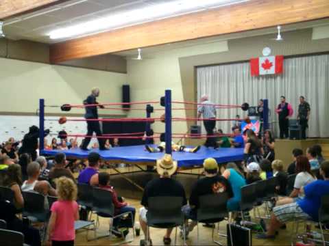 Big West Wrestling - 08/16/2013 - TOO HOT TO HANDLE Rutland Centennial Hall in Kelowna, BC ONE FALL, GRUDGE MATCH: Cremator Von Slasher w/ The Von Slashers (Rigor & Riea) vs. "Mad Dog" Marty Sugar